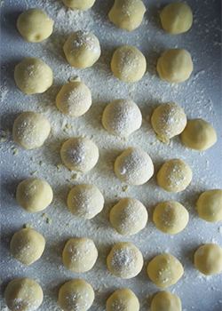 Ciasto zawinąć wokół śliwki. Szczelnie skleić brzegi i uformować ładną kulkę.