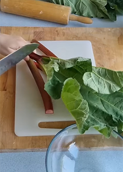 Rabarbar obrać ze skórki. Pokroić go na plasterki.